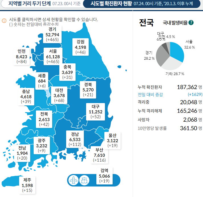 코로나19 집계(2021.7.24. 0시 기준)/:/ 1625명 본문