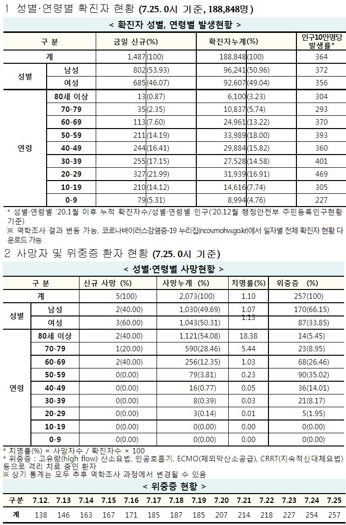 코로나19 집계(2021.7.25. 0시 기준)/:/ 1486명 본문
