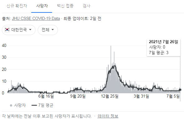 아래 자료의 출처는 정부 사이트, 네이버, 구글입니다. 구글그래프와 복지부사이트는 조금 다를 수 있습니다.
