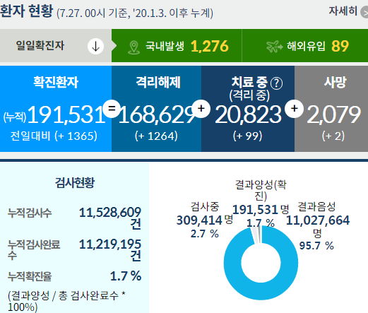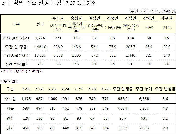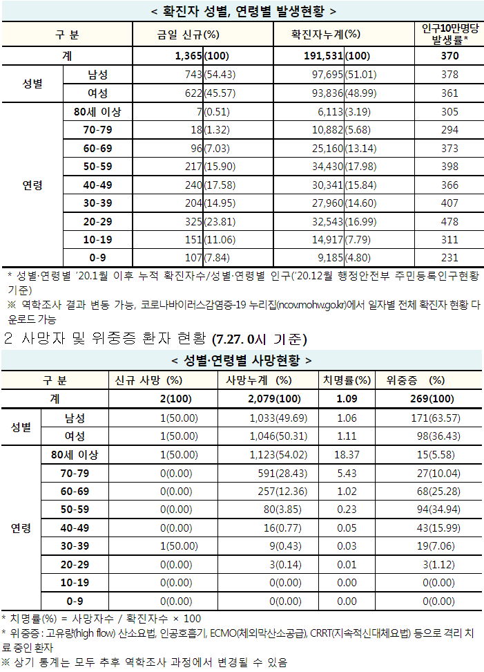 코로나19 집계(2021.7.27. 0시 기준)/:/ 1365명 본문