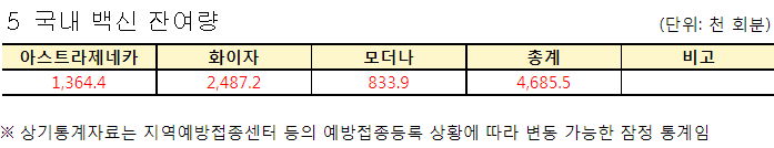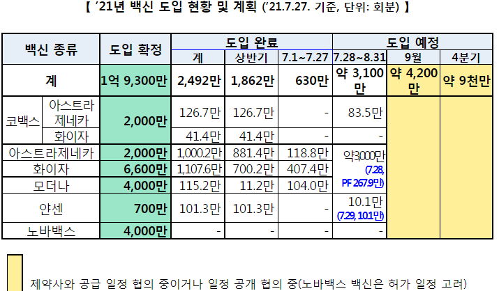 8월 말까지 약 3천만 도스를 도입하도록 되어 있습니다. AZ백신의 경우는 그렇게 될 것 같고, 화이자/모더나 등은 지금까지 들어온 양말고 앞으로는 요즘 해외뉴스도 있고 해서 유동적입니다.