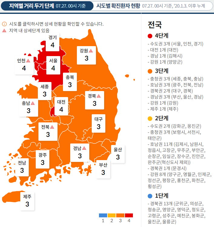 전국 3단계 중입니다. 일부지역은 사단계.