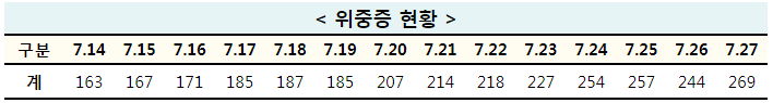 | 코로나19, 비수도권 거리두기 3단계, 대전시 4단계 격상(7.27(화)~8.8(일))/:/ 최근 확진자 동향 (3) | 2021.07.25 |