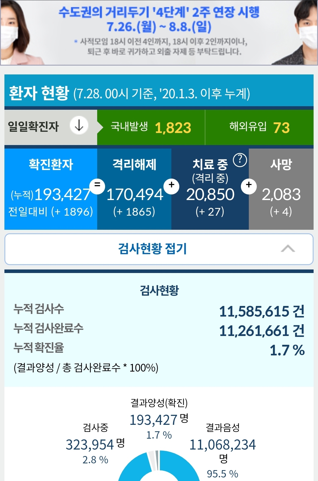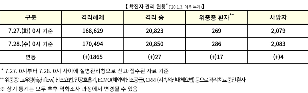 코로나19 집계(2021.7.28. 0시 기준)/:/ 1896명 본문