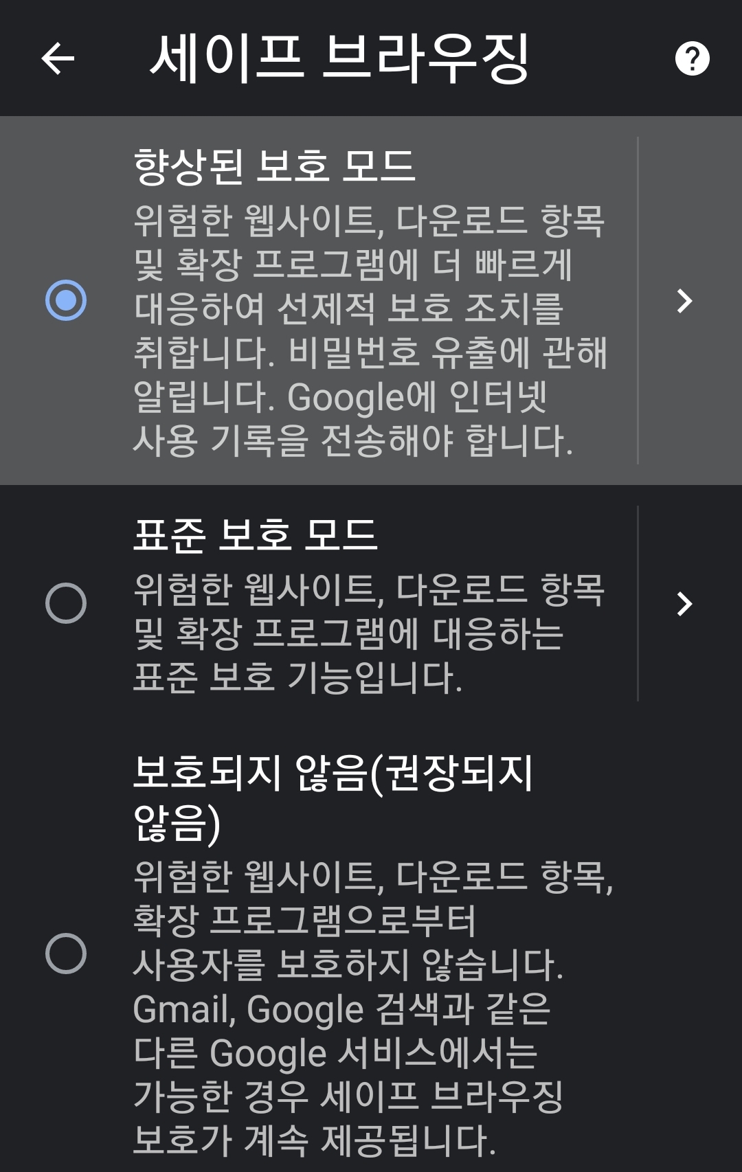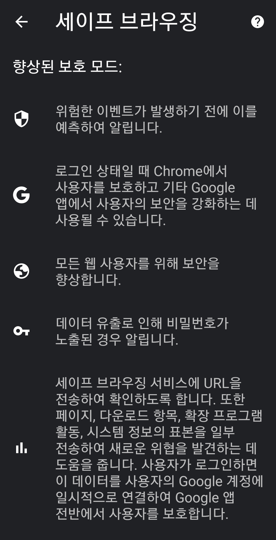 ※ 세이프 브라우징은 이제 모바일 크롬에도 적용됩니다.