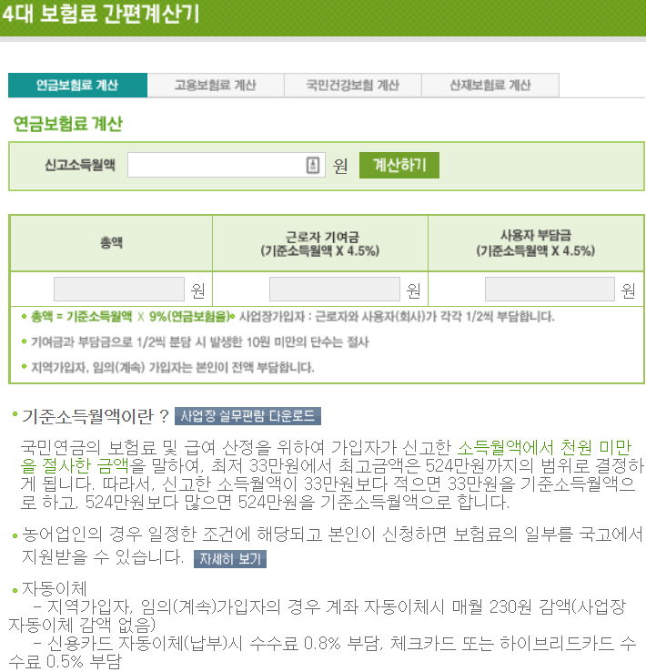 4대보험료 간편계산기 사이트 하나 링크 본문