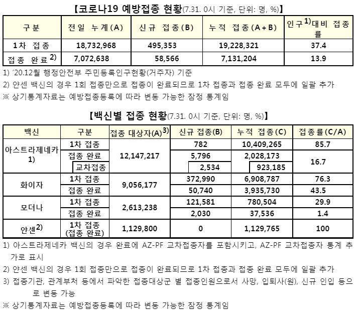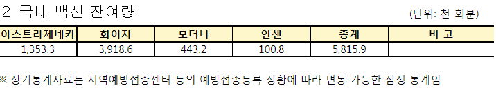 백신 재고는 충분합니다. 다만, 정부의 8월 접종계획을 완수하려면 한참 더 들여와야 합니다.