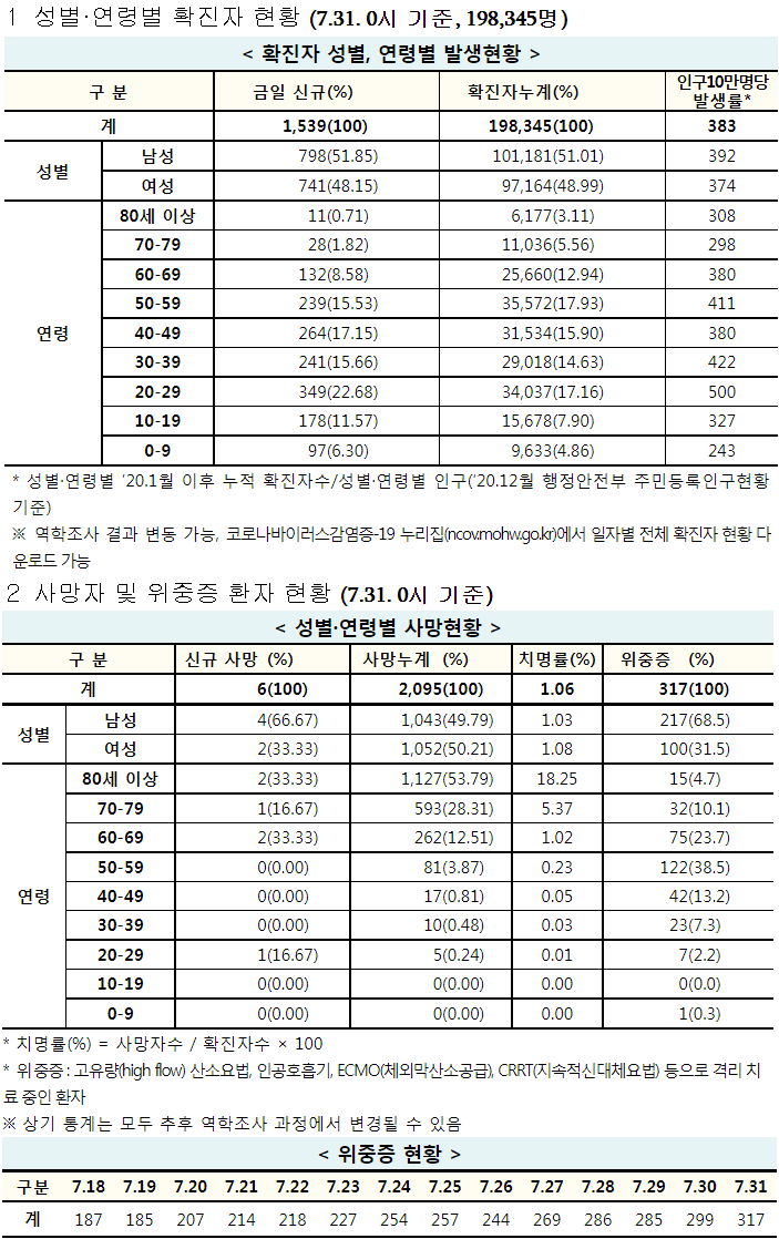 코로나19 집계(2021.7.31. 0시기준)/:/ 1539명 본문