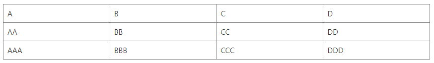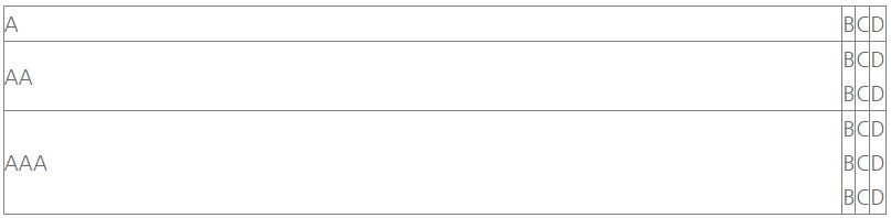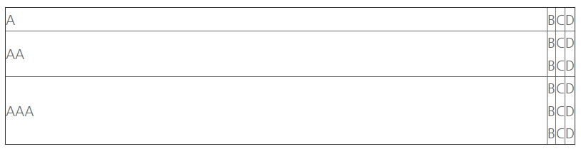 A의 아래줄에는 AA, AAA식으로 입력해봅니다. 편집창에서는 위와 같은 등간격 테이블에 각각 들어갑니다. 이렇게 말이죠.