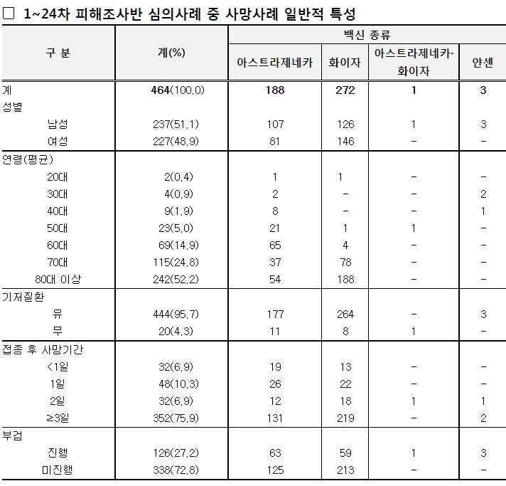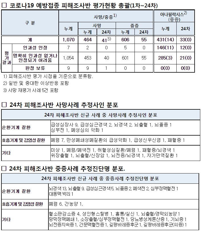 코로나19 예방접종 피해조사반 사례평가 결과