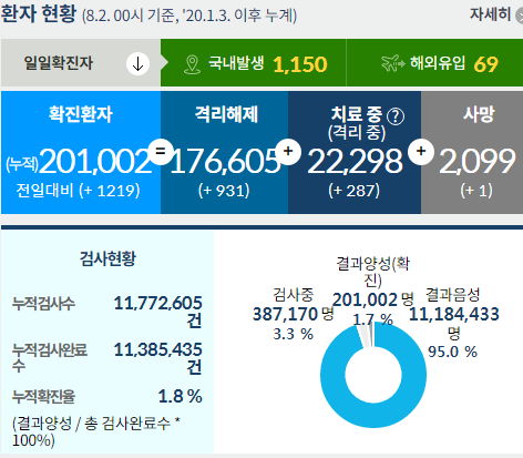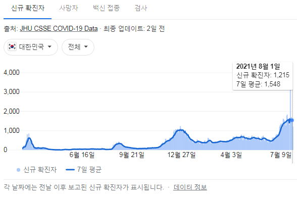 코로나19 집계(2021.8.2. 0시기준)/:/ 1219명 /:/ 상세통계가 나오는 날 본문
