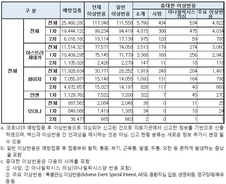 백신접종 후 이상반응(부작용)과 심의결과