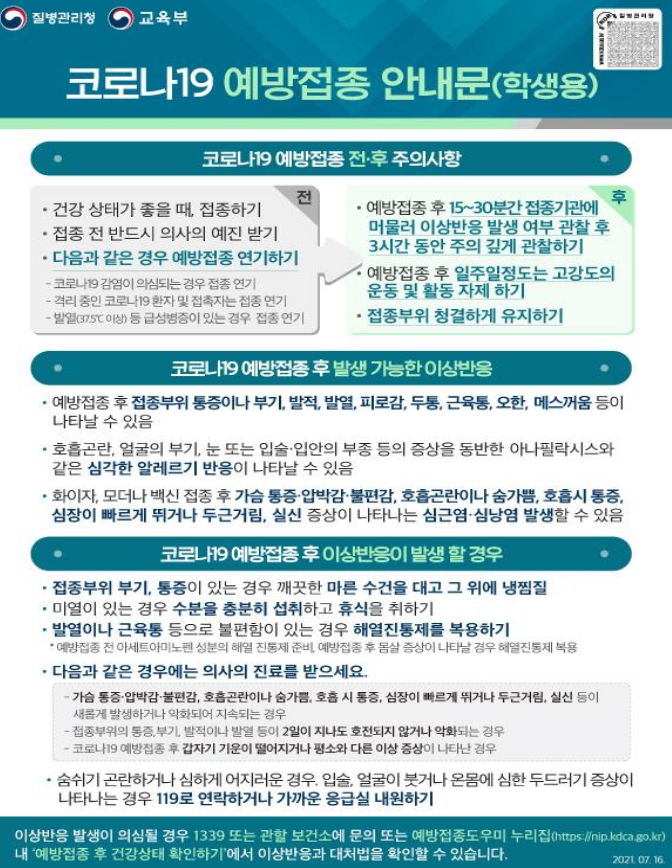 | 2021년 8월 코로나19 예방접종 일정 안내 등 보도자료 일부 정리(업데이트)/:/ 60~74세 고령층 중 미접종자, 청장년층 우선접종(지자체 자율접종), 18~49세 청장년층 사전예약 (0) | 2021.08.04 |