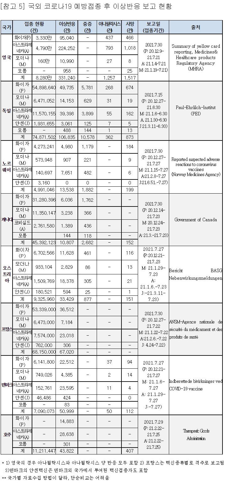 (참고) 외국 주요국 이상반응집계, 발생현황, 예방접종현황