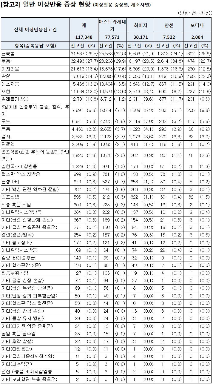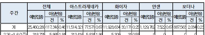 백신종류별 이상반응