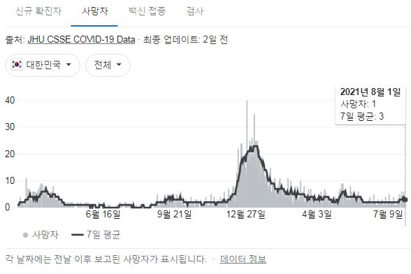 아래 자료의 출처는 정부 사이트, 네이버, 구글입니다. 구글그래프와 복지부사이트는 조금 다를 수 있습니다.