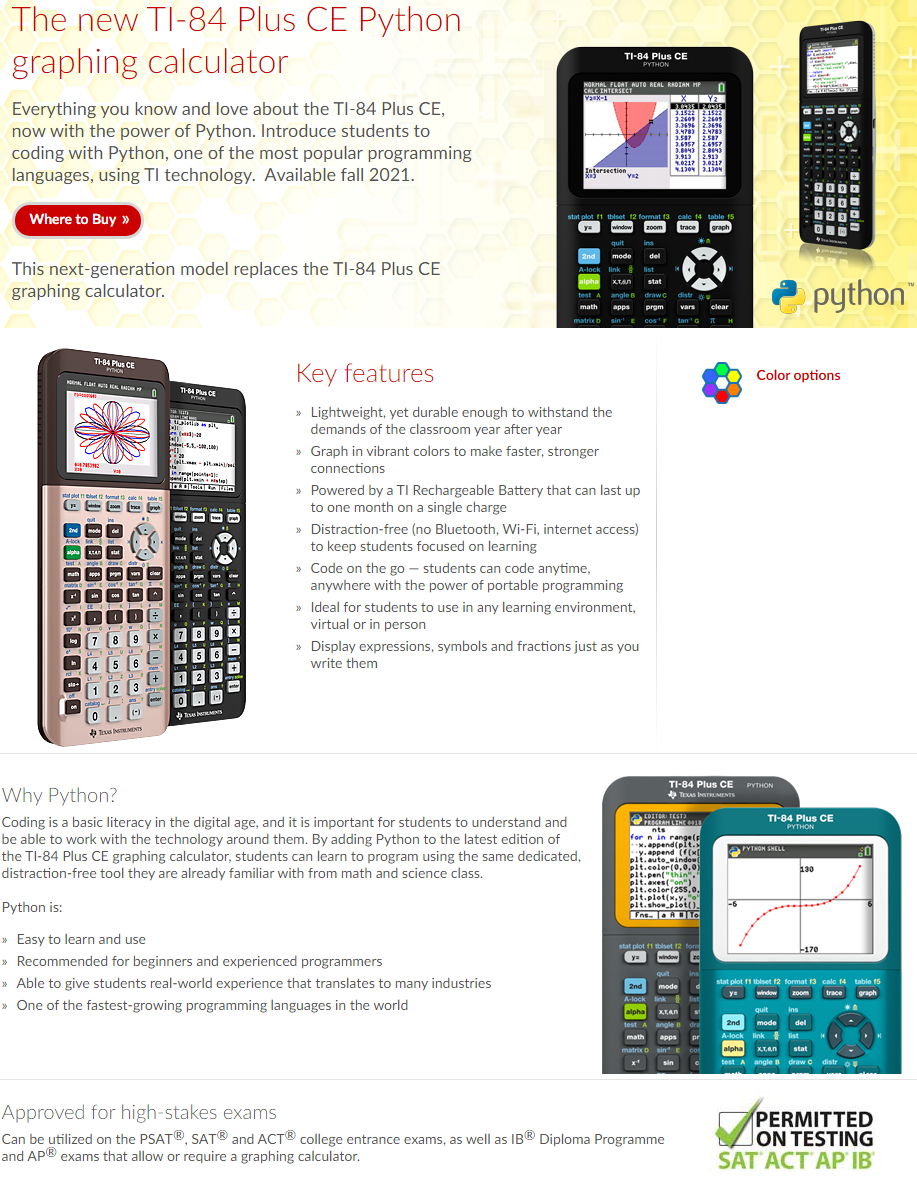 Texas Instruments(TI)의 공학용 계산기, Python 지원 Ti-84 Plus CE Python /:/ TI계산기 종류 등 본문
