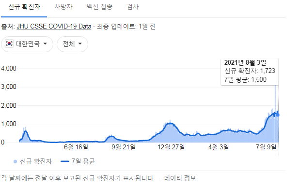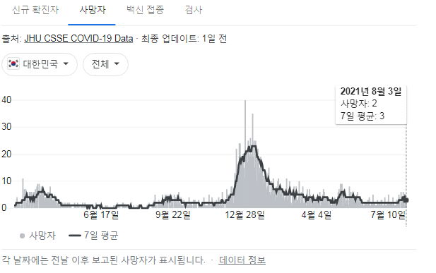 아래 자료의 출처는 정부 사이트, 네이버, 구글입니다. 구글그래프와 복지부사이트는 조금 다를 수 있습니다.