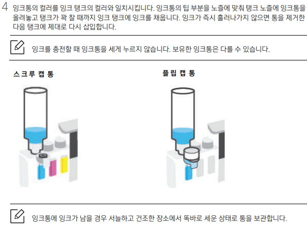 잉크 카트리지에 잉크 채우기: 정품 잉크통