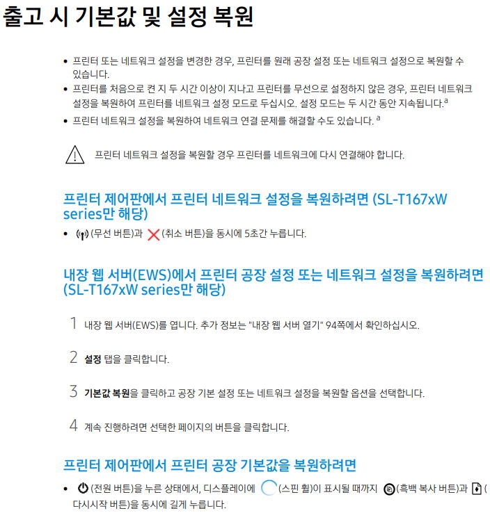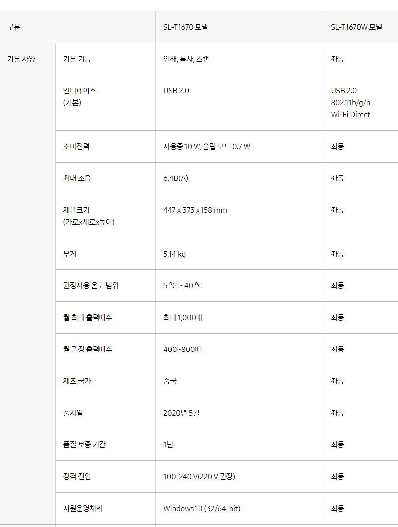 SL-T1670W는 SL-T1670에 무선랜 인쇄가 되는 것입니다. 정확히는 다이렉트 프린트라고, 무선랜 네트워크, Wi-Fi Direct, 블루투스 연결로 인쇄할 수 있다고 합니다.