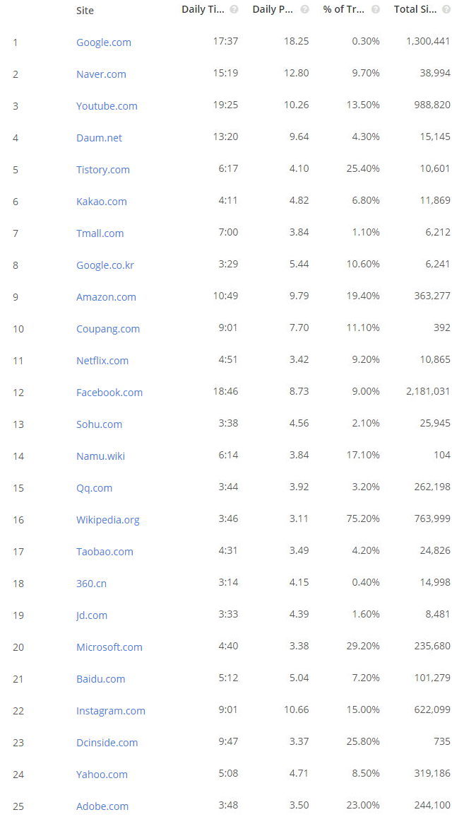 The top 500 sites on the web: South Korea