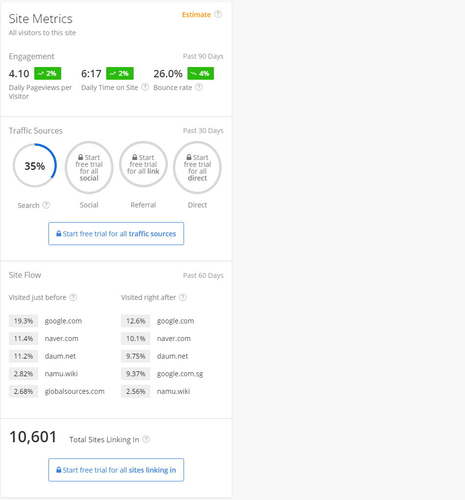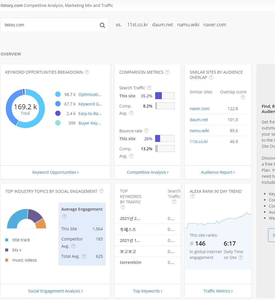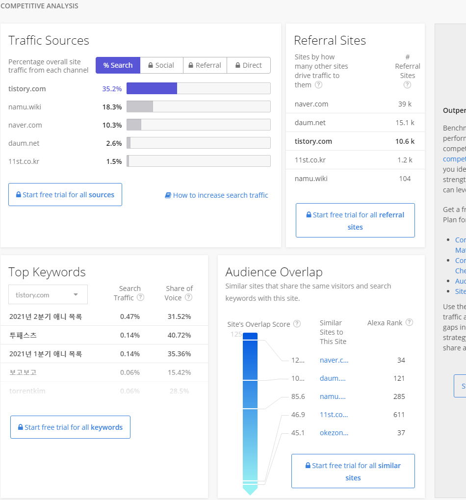 를 클릭하면, 임의의 웹사이트 도메인에 관한 트래픽 정보를 볼 수 있습니다.