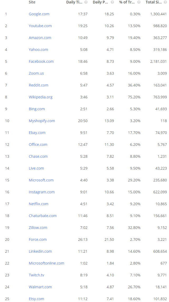 - Daily Time on Site: Estimated daily unique pageviews per visitor on the site. Updated daily based on the trailing 3 months.