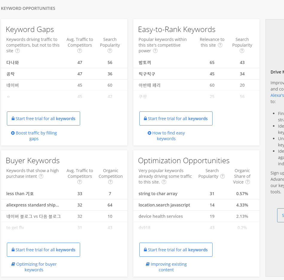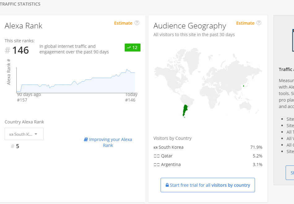 그런데, 전세계는 몰라도 한국 랭킹은 좀 이상해요. 중국사이트가 너무 많음. 어떻게 집계하면 이렇게 되지? 전부터 알렉사는 그랬는데 이유가 궁금했습니다. 1 2