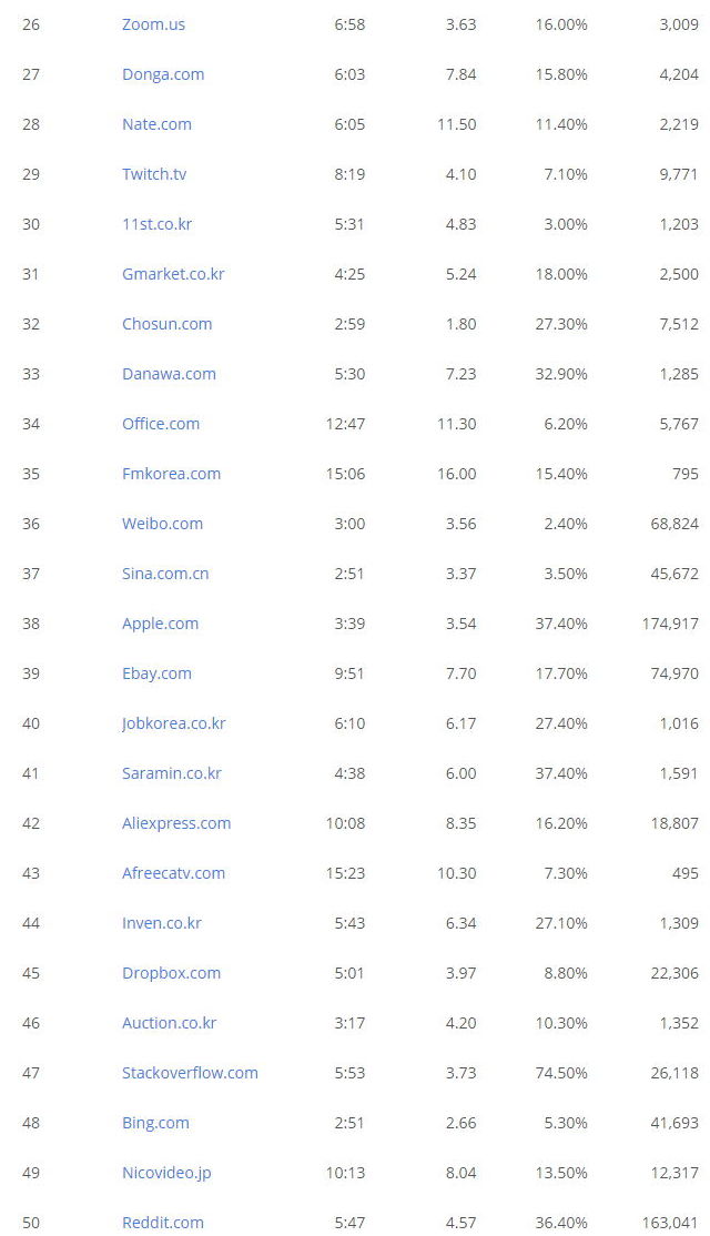 Alaxa.com 웹사이트 랭킹(세계 50, 한국 50, 미국 50)/:/ 웹사이트 간단정보 보기 Websites Traffic Statistics