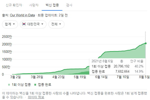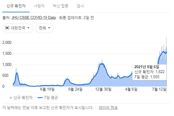아래 자료의 출처는 정부 사이트, 네이버, 구글입니다. 구글그래프와 복지부사이트는 조금 다를 수 있습니다.