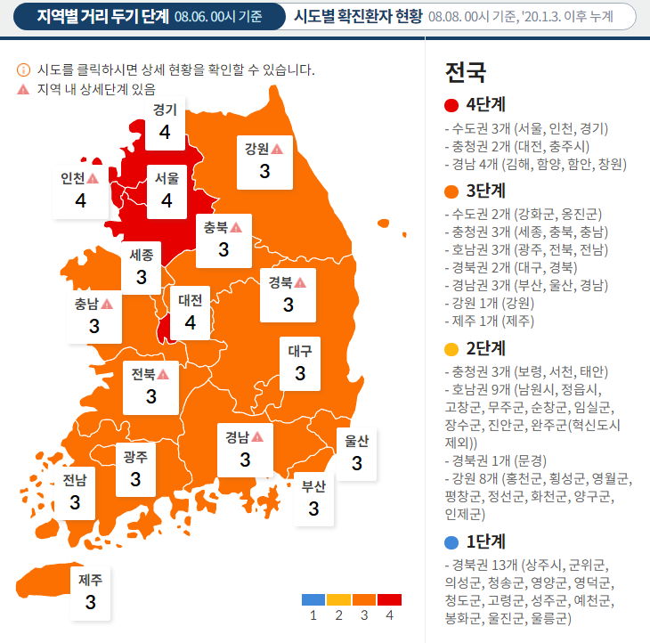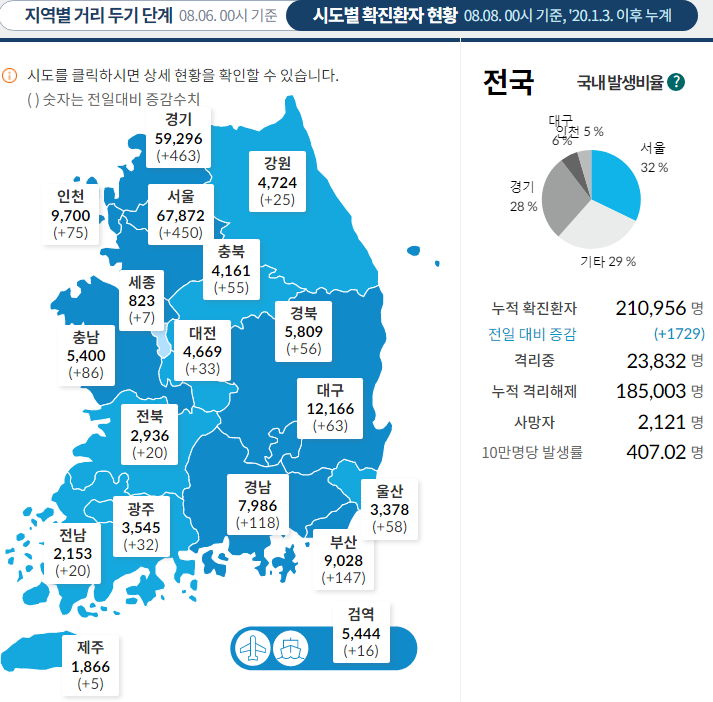 여전히 수도권중심. 하지만 수도권에서 불붙은 4차유행은 경부선을 타고 지방까지 퍼질 대로 퍼졌습니다.