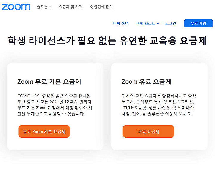 - 코로나19 유행초기인 2020년 3월에 교육기관계정(우리나라의 초등~고등과정) 무료제한이던 40분 100명을 풀어 무제한으로 지금까지 서비스하고 있었다고. [본문으로]