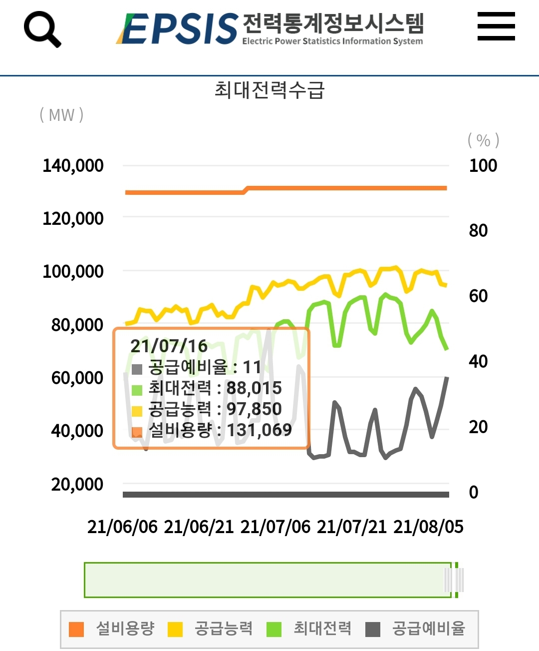 7월말 이후로 전력수급상황도 여유가 생겼습니다.