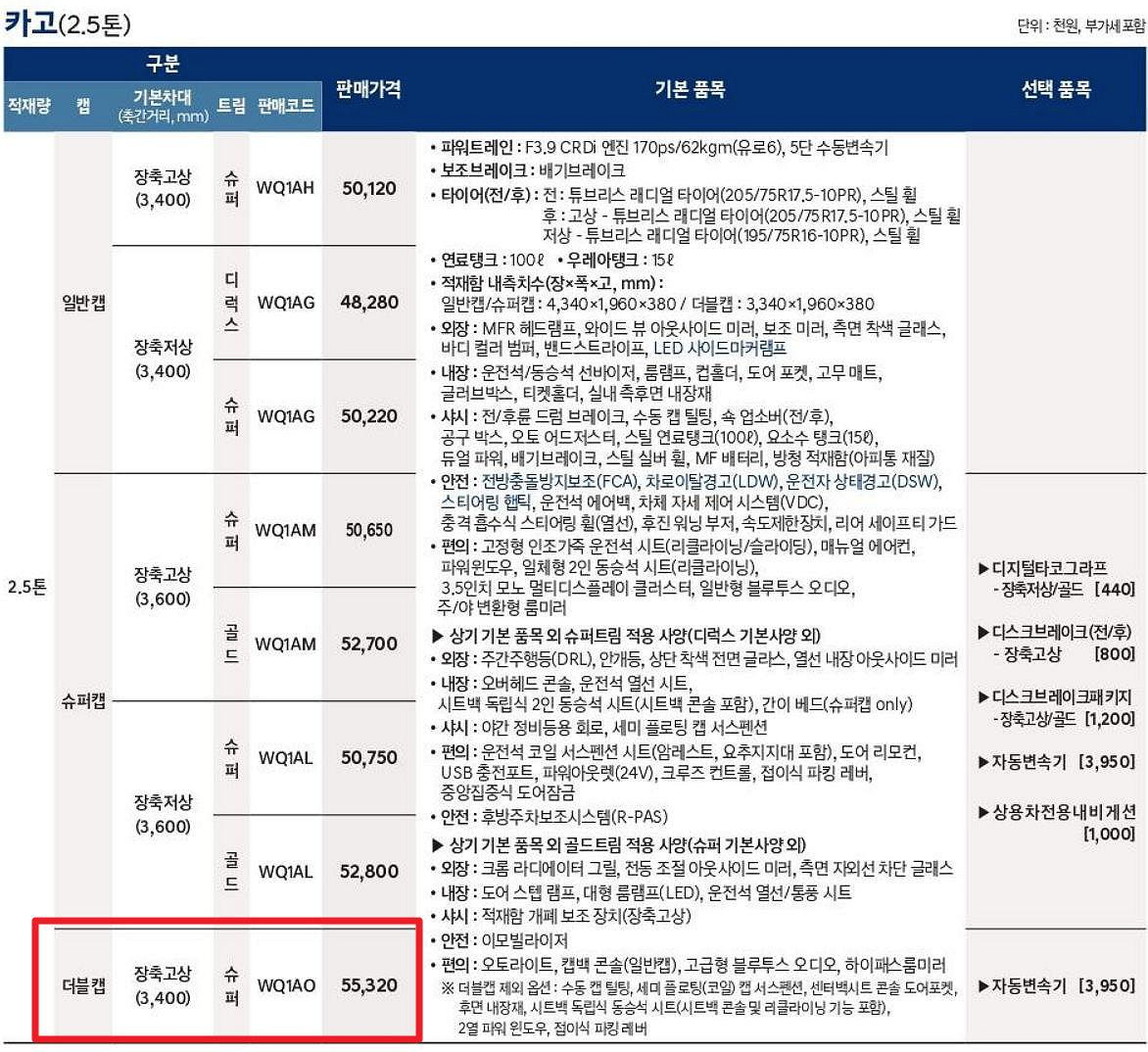2.5톤 더블캡은 주로 관용차로 많이 팔린다더군요.