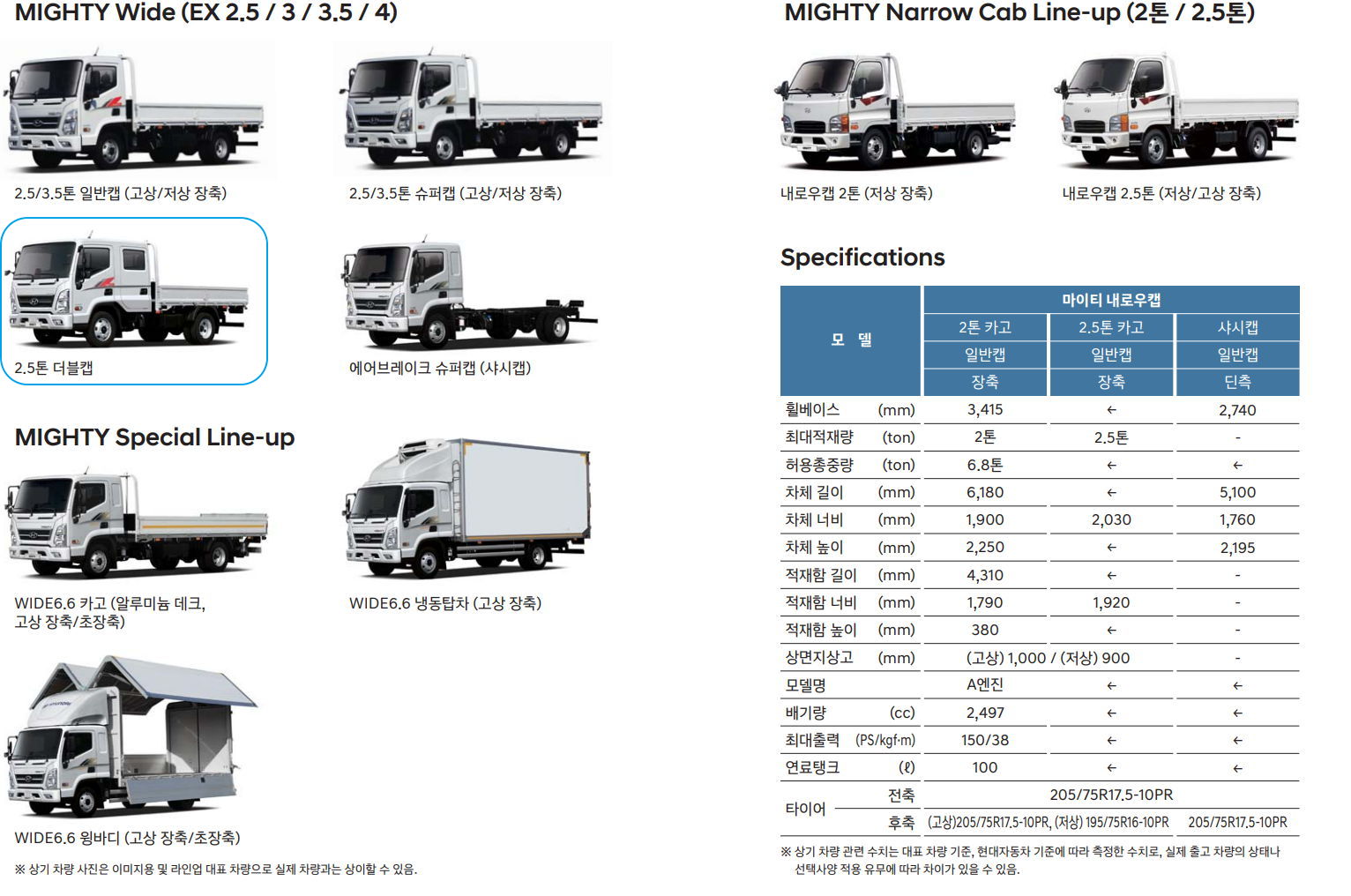 현대 마이티 2.5톤 더블캡 트럭에 관해 찾아본 것 본문
