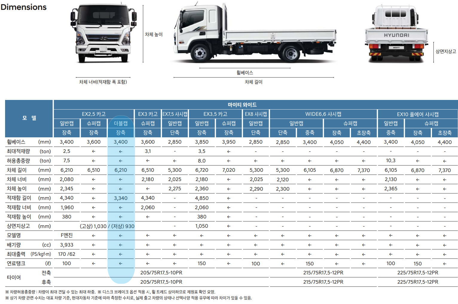 검색해보니 차종은 올뉴마이티 2.5톤 더블캡인데, 장축에 고상만 나오는 것 같네요. 자세히 알아보지는 않았습니다.