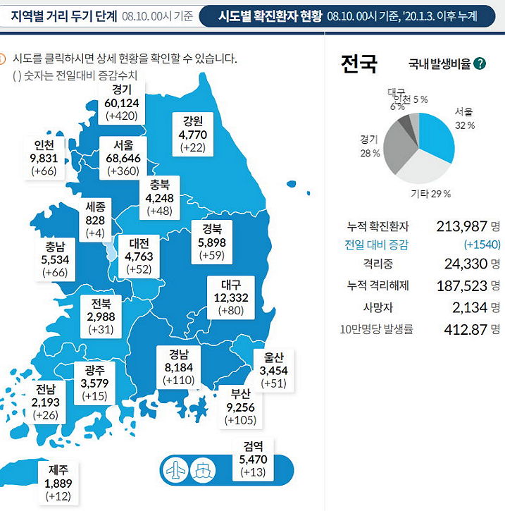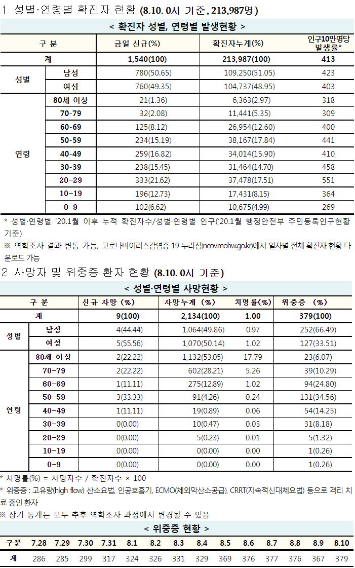 코로나19 집계(2021.8.10. 0시기준)/:/ 1540명 /:/ 예방접종 사전예약 안내/:/ 변이바이러스 통계 본문