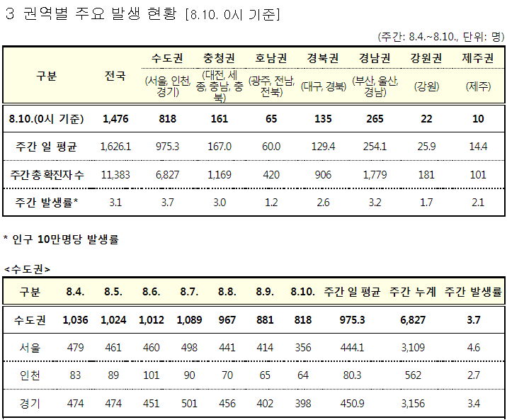 수도권(서울 경기 인천)은 846명 (지역인구 2592.6만 명/ 면적 1.18만km^2 )