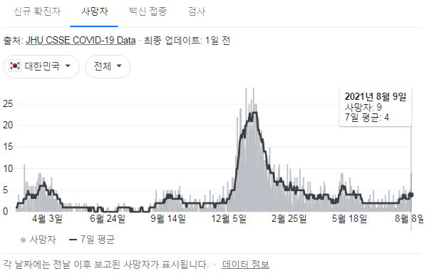 아래 자료의 출처는 정부 사이트, 네이버, 구글입니다. 구글그래프와 복지부사이트는 조금 다를 수 있습니다.