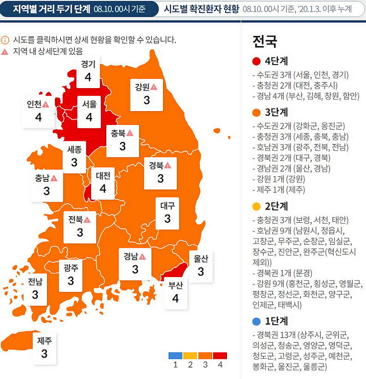 여전히 수도권중심. 하지만 수도권에서 불붙은 4차유행은 경부선을 타고 지방까지 퍼질 대로 퍼졌습니다. 지방은 특히 모임과 단체생활시설 집단감염이 늘었고, 예방접종을 마쳤는데도 델타변이 돌파감염된 집단감염사례도 확인됐습니다. 전염능력이 강한 변이주와 돌파감염 등도 있는 만큼, 방역조치에 허용된 모임을 하더라도 마스크와 위생수칙은 철저하게 지켜야합니다.