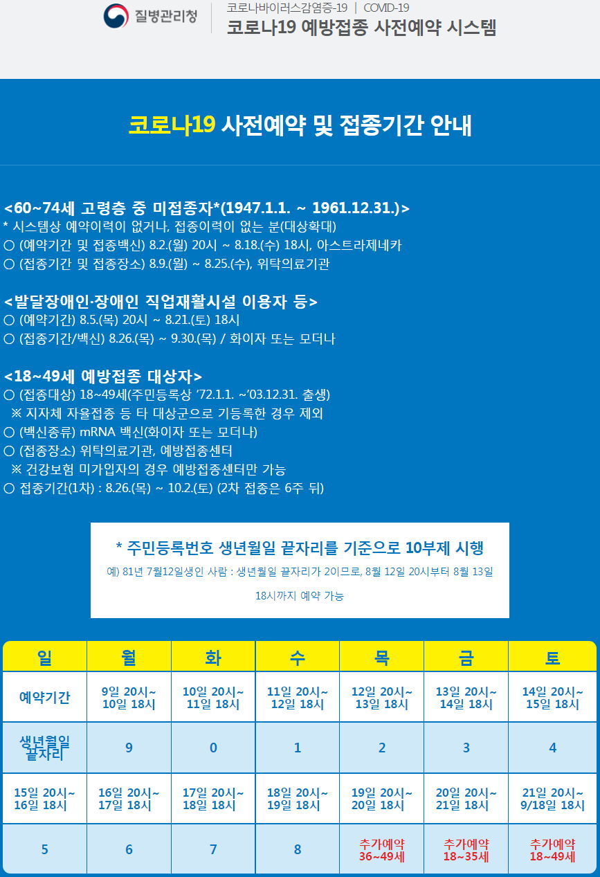 | 코로나19, 18~49세 예방접종 10부제 사전예약 시작 (0) | 2021.08.09 |