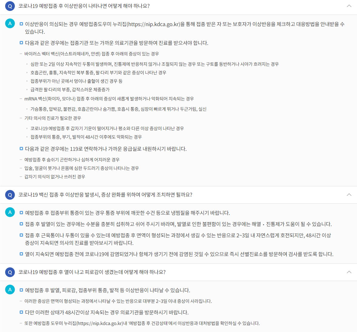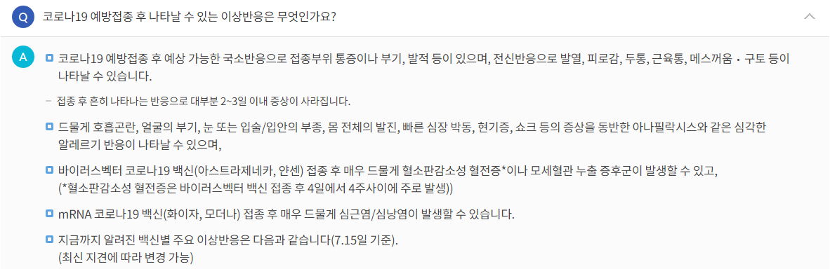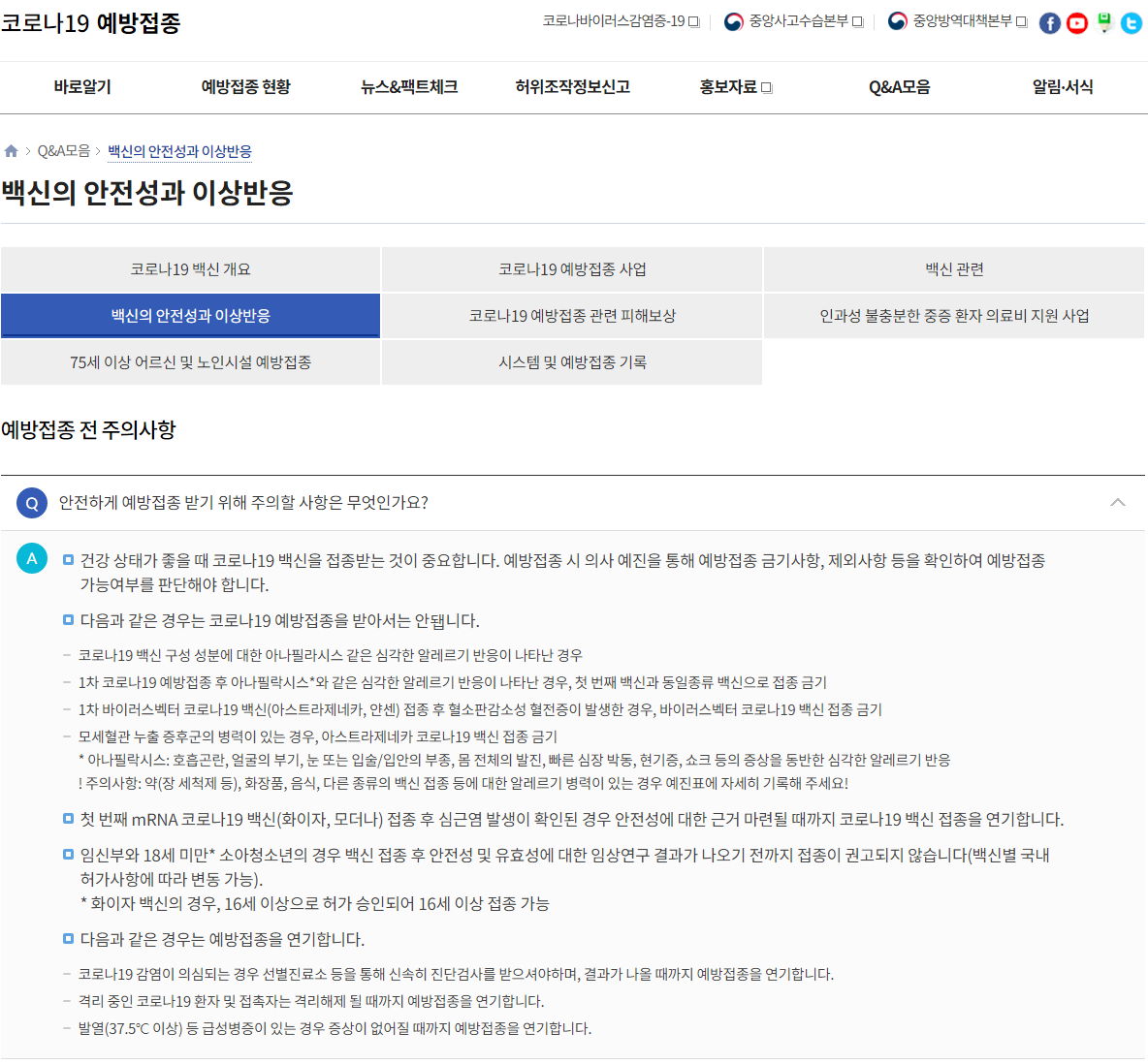 Q&A모음> 백신의 안정성과 이상반응 코너.