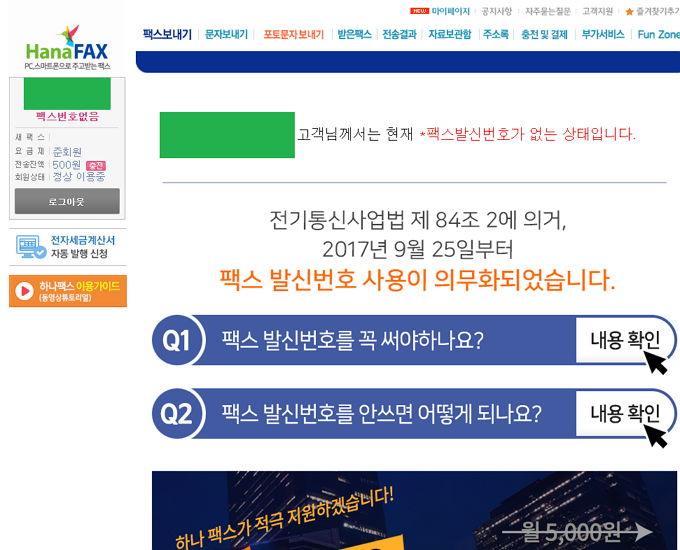 회원가입은 받고, 맛보기로 무료팩스제공건수도 주지만,