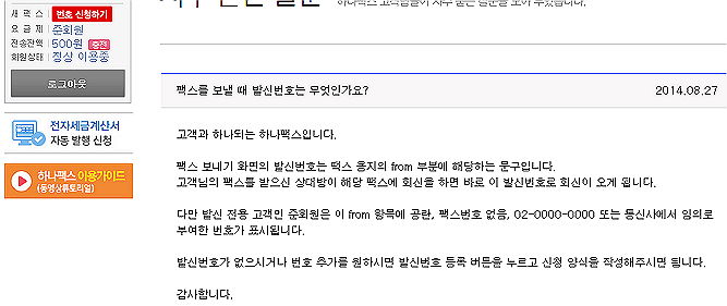 예전, 모 인터넷팩스서비스사이트 화면 본문