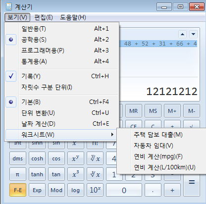 윈도우 7 기본 계산기 화면 스크린샷기록 본문