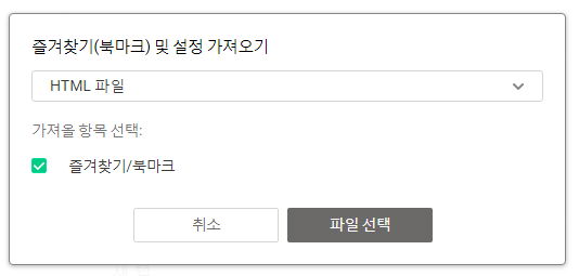 다른 웹브라우저에서 저장한 북마크(즐겨찾기) 파일을 읽어들이는 방법입니다.