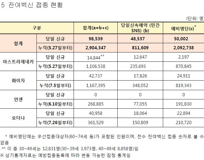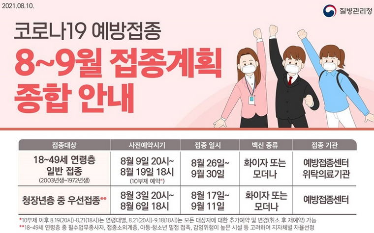 ㅡ 7월 말부터 50대가 화이자 또는 모더나 백신을 맞기 시작