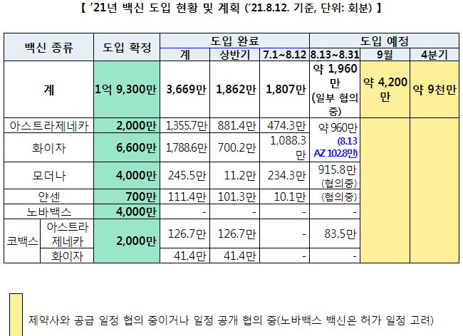 ㅡ 아스트라제네카 백신은 오늘(13일) 102만 8천 회분이 도입되는 등 올해 남은 기간 들어올 물량은 720만 회분이 넘어