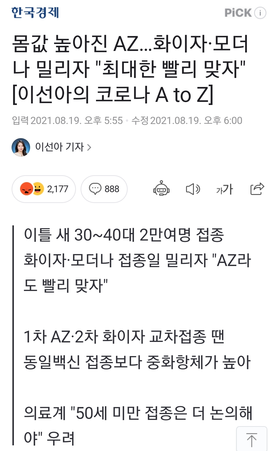 몸값 높아진 AZ…화이자·모더나 밀리자 "최대한 빨리 맞자" [이선아의 코로나 A to Z]