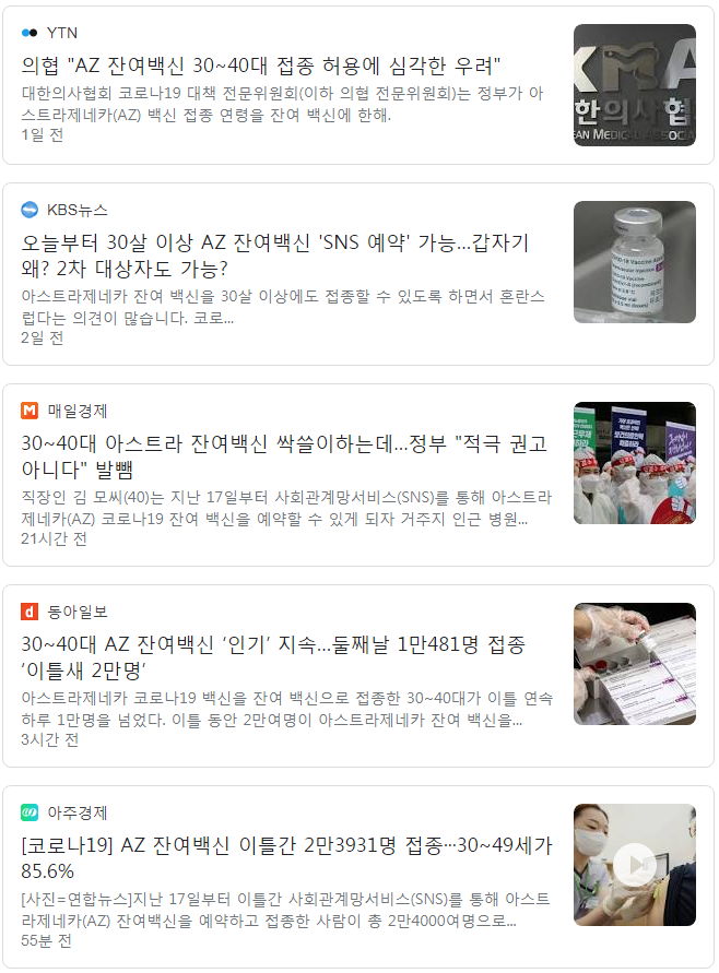 ㅡ 7월부터 50세 미만은 아스트라제네카 백신을 맞을 수 없도록 지침을 바꿔 (18~49세 화이자백신 접종 10부제 사전예약 중)